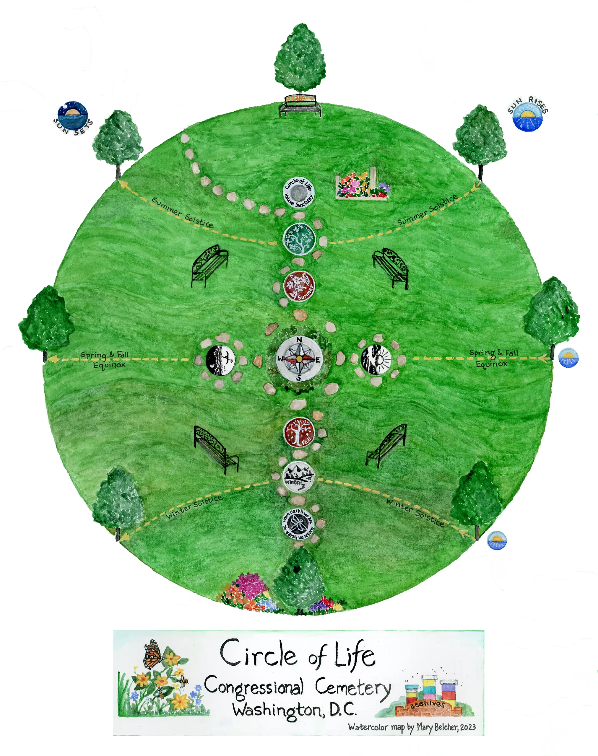 Please join Congressional Cemetery and the designers of the Circle of Life for an outdoor dedication ceremony honoring the creation of this signature cemetery fixture. The event coincides with the Vernal Equinox, a time to celebrate nature’s renewal and longer days as the sun crosses the celestial equator.