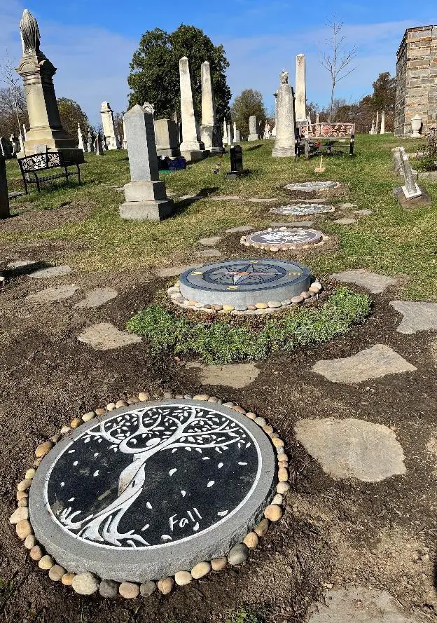 The circle of trees, engraved stones, and native plantings are a gift to preserve the cemetery’s natural environment for future generations.