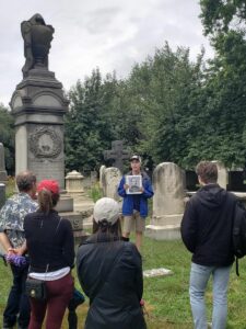 The Cemetery is open to dogs on Sundays. Please be aware of that off-leash dogs will be on the grounds at the time of the tour.