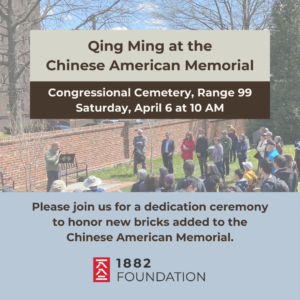 Join Congressional Cemetery and the 1882 Foundation on April 6 for grave-cleaning and memorialization of our Range 99 Chinese American Memorial!
